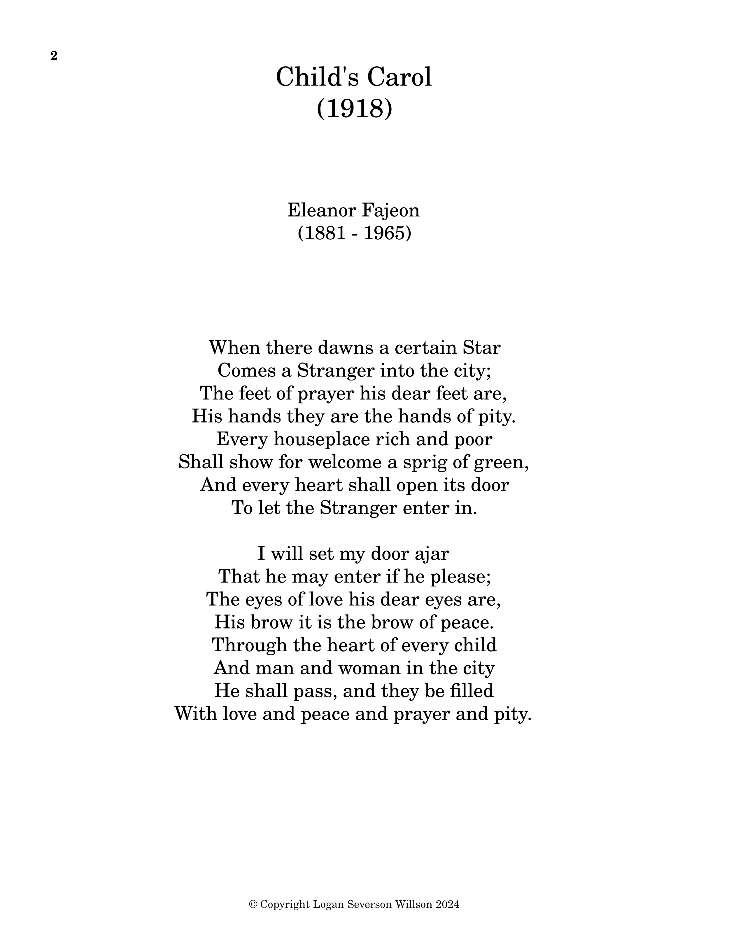 Compositions Categories: All Choral Solo Voice Solo Instrumental Chamber Music Instrumental Ensemble All | Choral | Solo Voice | Solo Instrumental | Chamber Music | Instrumental Ensemble | "I don't ask you to love me" $20.00 A Red, Red Rose $20.00 A Wood Fairy's Slumber (Score) $20.00 A Wood Fairy's Slumber (Trombone) $10.00 Beloved, You Are Loved $20.00 Catching Moments (Score) $30.00 Catching Moments (Parts) $10.00 Child's Carol (Full Score) $40.00 Child's Carol (Parts) $10.00 Child's Carol (Vocal Score) $20.00 I Can See Stars $10.00 Let Love Be Known $20.00 If I Can Stop One Heart From Breaking $20.00 Love Drives Out Hate $20.00 Strollin' $10.00 Tales Of Regretful Retrospection (Score) $20.00 Tales Of Regretful Retrospection (Parts) $10.00 The Answer $20.00 The Dark Hills $20.00 Three English Images $30.00 When All Falls Silent $20.00